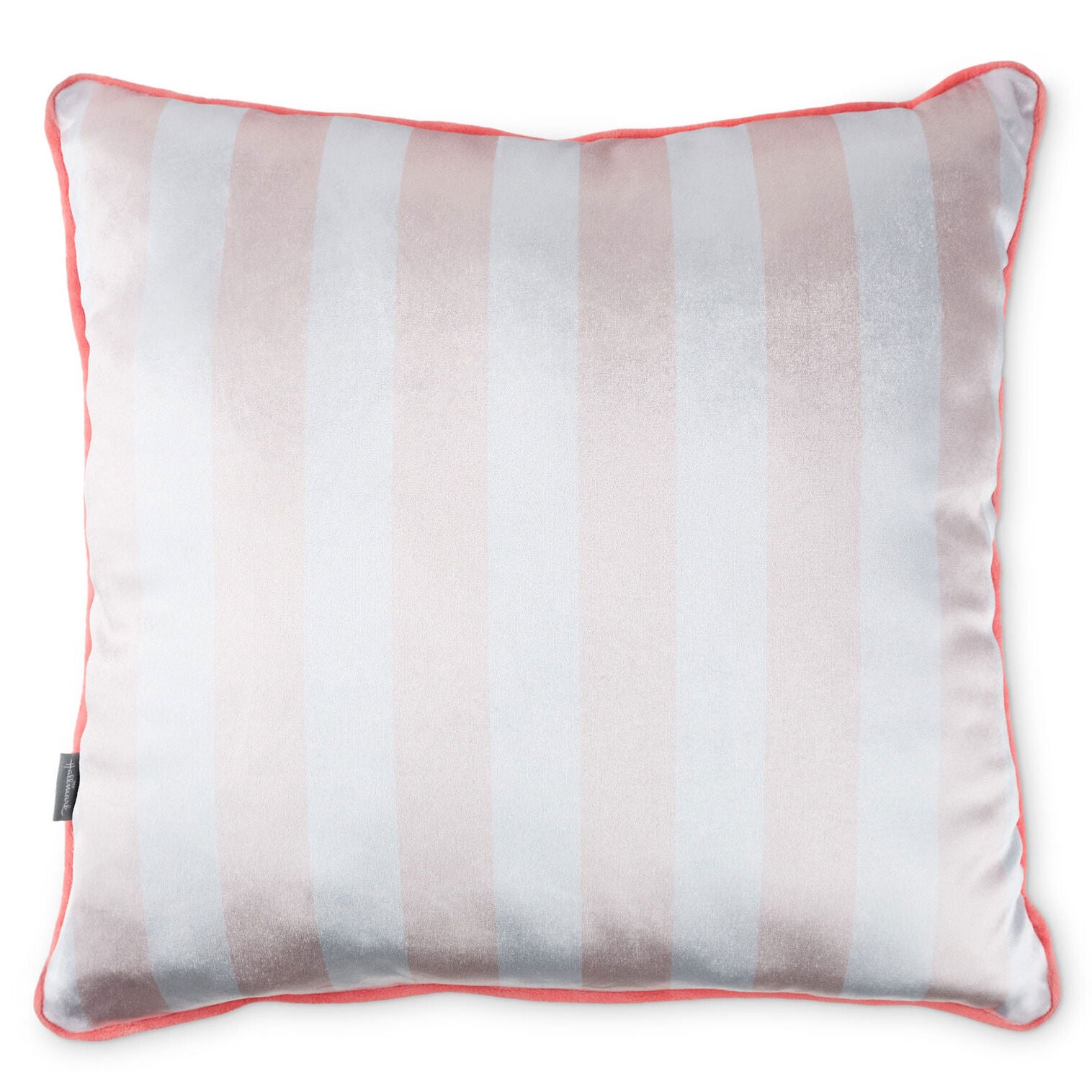 Cuddle up with a good book and this delightful pillow at your service. Decorative throw pillow in pink-and-white-striped satin features a Bridgerton-inspired message framed by coral, pink and lavender flowers and coral-pink piping. Dress up a bedroom, boudoir, sitting room or cozy reading nook with this feminine pillow embroidered with Lady Whistledown's favorite opening phrase.