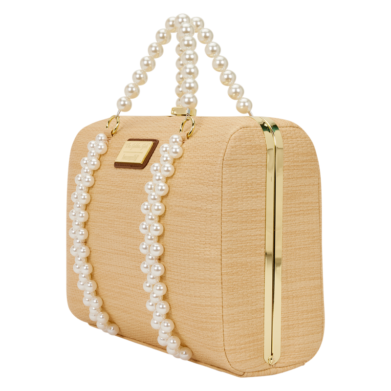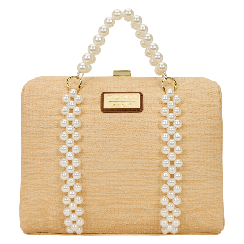 This bag is inspired by Sophia's handbag. You'll find wicker faux leather, beads running up the sides, and a beaded handle. You'll also find a metal charm that says "Stay Golden."
